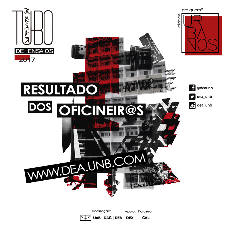 Os ministrantes das oficinas selecionadas devem participar de uma reunião com a Diretoria de Esporte, Arte e Cultura (DEA), que vai acontecer no dia 11 de Maio às 12:00 no Anfiteatro 09 (ICC Sul, campus Darcy Ribeiro).