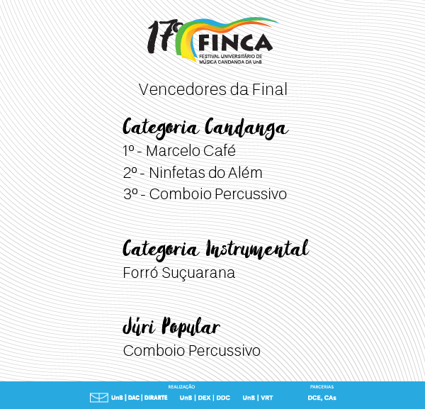 Após dois anos sem o FINCA, a XVII edição contou com 51 bandas inscritas na primeira fase. Dessas, 13 foram selecionadas pelo júri oficial para irem à Final. Foram 3 na Categoria Música Instrumental e dez na Candanga (com letra). Depois dos shows, o público curtiu a banda Talo de Mamona, vencedora da última edição, em 2014.