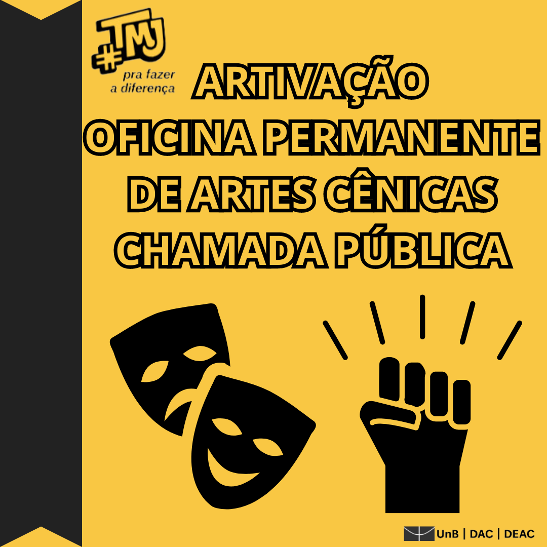 O Projeto Artivação - Oficina Permanente de Artes Cênicas está com inscrições abertas até dia 10 de abril para quem queira participar do projeto como bolsista remunerada/o de extensão!