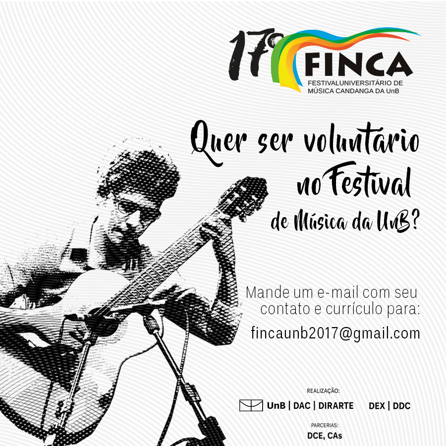 O Festival Universitário de Música Candanga (FINCA) lança hoje (30/08) a chamada pública de jurados para a 17ª edição do evento que ocorrerá no mês de outubro.